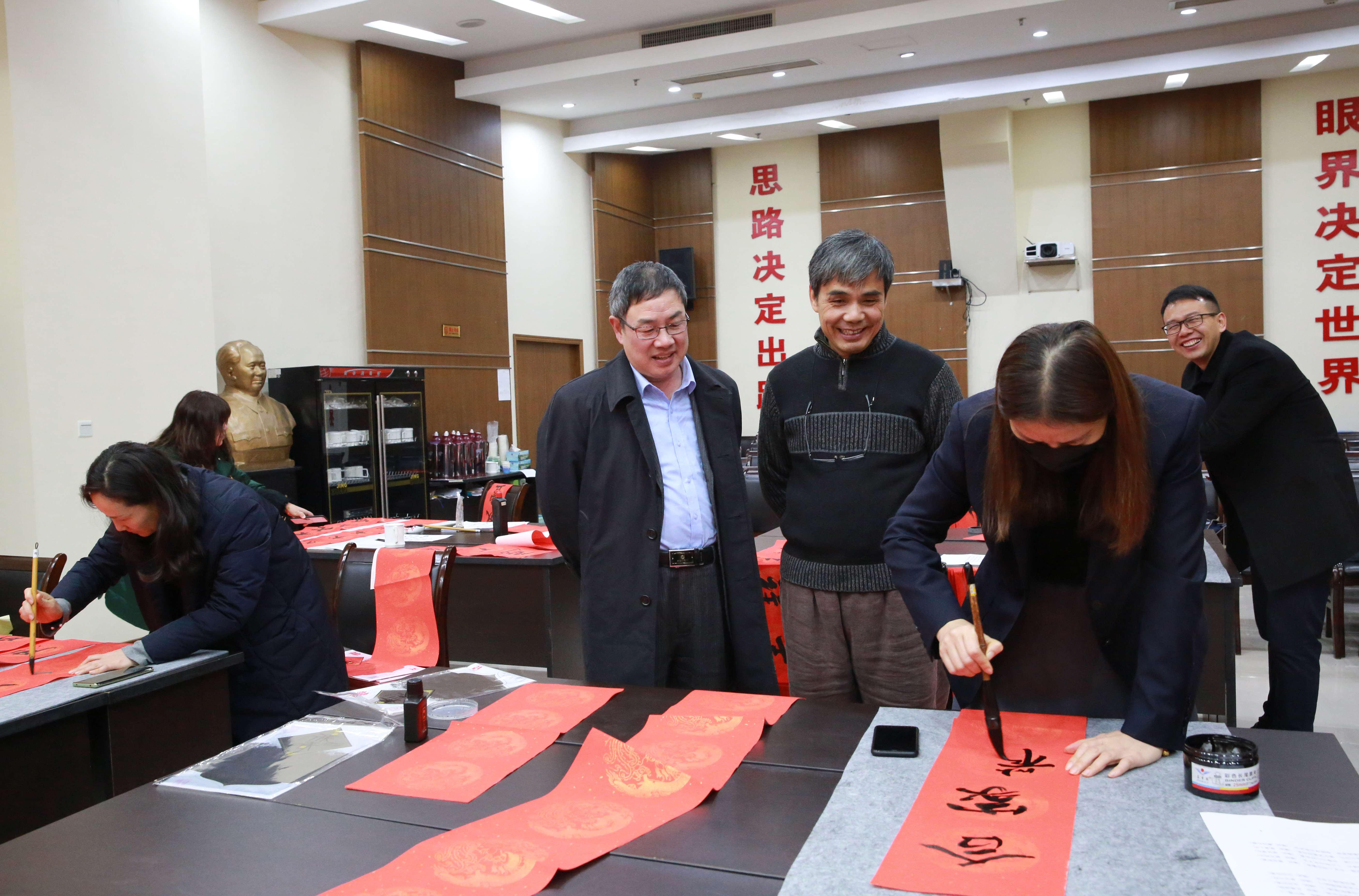 臺州高速集團開展“寫春聯、送祝福”活動 春節將至,臺州高速集團開展以“迎新春、送祝福”為主題的寫春聯、送春聯活動,并邀請書法老師到場指導。來自集團各部室、所、子公司的書法愛好者紛紛前來參與,集團董事長、總經理陳文波到場觀摩。
