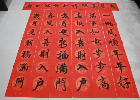 圖為寫好的春聯