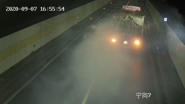 9月7日下午16點53分,一輛大貨車駛入寧向黃土嶺隧道,打著雙閃燈,整車發(fā)散出濃濃的煙霧,造成隧道內(nèi)能見度極低。